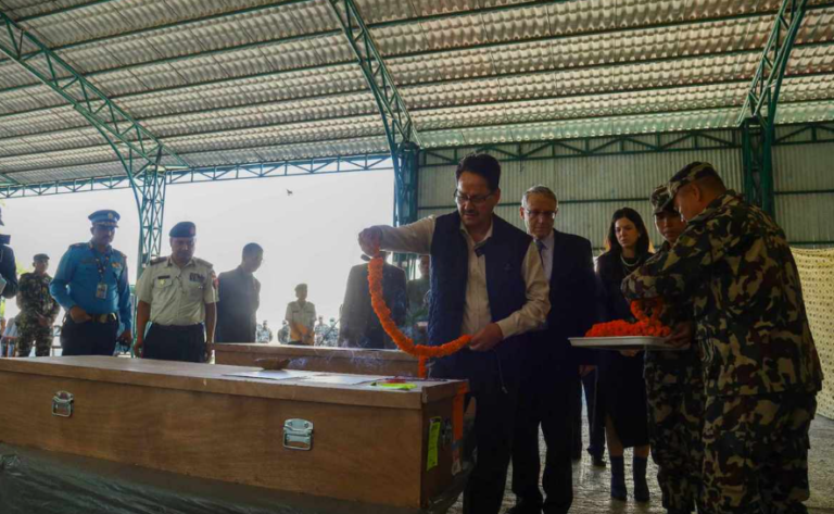 इजरायलबाट तीन नेपालीको शव काठमाडौँ ल्याइएपछि त्रिभुवन अन्तर्राष्ट्रिय विमानस्थलमा श्रद्धाञ्जली दिइएको छ। इजरायलमा मारिएका १० मध्ये ४ नेपालीको शव नेपाल पठाइएको छ। तीन जना शव ल्याइसकिएको छ भने एक जनाको