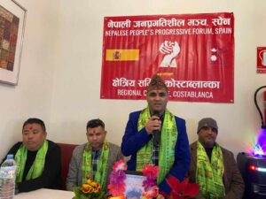 स्पेन । नेपाली जनप्रगतिशील मञ्च कोष्टाव्लाङ्का स्पेनको नयाँ कार्यसमिति सर्वसम्मत चयन भएको छ । दोश्रो अधिवेशनबाट बालकुमार बुढाको अध्यक्षतामा १० सदस्यीय कार्यसमिति बनेको हो । बाग्लुङको तमानखोला गाउँपालिका घर भएका बालकुमार ७ वर्षदेखि स्पेनमा छन् । उपाध्यक्षमा बाग्लुङ काठेखोला गाउँपालिकाका सुवास पुन चयन भएका छन् । सचिवमा चितवन माडीका विप्लव काफ्ले चयन भएका छन् । उनी डेढ दशकदेखि पत्रकारितामा क्रियाशील थिए । सहसचिवमा स्पेनमै पाइलट अध्ययनरत नवलपुरको गैडाकोट नगरपालिकाकी सेजल कँडेल चयन भएकी छन् । कोषाध्यक्षमा बाग्लुङका कृष्ण पुन चयन भएका छन् । सदस्यहरुमा चितवनकी सम्झना मैनाली भट्ट, एकबहादुर भट्ट, नवलपुरका वर्षा कँडेल, माधव न्यौपाने, टंकप्रसाद शर्मा चयन भएका छन् । १ जना सदस्य पछि कार्यसमितिले मनोनीत गर्ने जनाइएको छ । सल्लाहकार कमिटिमा निवर्तमान अध्यक्ष केशरबहादुर थापा, पूर्व अध्यक्ष केशवराज कँडेल छन् । कोष्टाव्लाङ्का क्षेत्रमा प्रगतिशील विचार भएका नेपालीहरुको बाहुल्यता छ । मञ्च नेकपा माओवादी निकट संगठन हो । अधिवेशनको उद्घाटन शत्रमा बोल्दै नेपाली जनप्रगतिशील मञ्चको प्रवास समन्वय समितिका केन्द्रीय सदस्य गंगा भुषालले जनप्रगतिशील मञ्च युरोपको ५ औं महाधिवेशनमा युरोपभरका नेपालीहरुको जमघट बार्सिलोनामा हुने बताए । उनका अनुसार १५० बढी प्रतिनिधिहरु सहभागी हुनेछन् । जनप्रगतिशील मञ्च स्पेनका अध्यक्ष विशाल ढुङ्गानाले स्पेनमा रहेका नेपालीको दुख, सुखमा मञ्च सदैव सक्रिय रहेको बताए । कार्यक्रममा एनआरएनए स्पेनका सचिव केशवराज कँडेल, सन्तोष अर्याल, मञ्चका केन्द्रीय महासचिव सूर्यप्रसाद सापकोटा धिरज, कोषाध्यक्ष गोविन्द अधिकारी, एनआरएनए स्पेनका सल्लाहकार मुकुन्द लामिछाने, निवर्तमान उपाध्यक्ष सृजना लामिछाने,