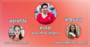 त्यसैगरी महासचिवमा सन्ध्या अर्याल ( कतार) र कोषाध्यक्ष पदमा भावना तिमिल्सिना (क्यानडा) रहेकी छिन् । अन्य विभिन्न देशहरुबाट संयोजक तोकी प्रतिनिधित्व गरिएको छ । जसमा अमेरिका, क्यानडा, नर्वे, डेनमार्क, स्पेन, जापान, आयरल्याण्ड, जर्मन, युके, बेल्जियम, मकाउ, कतार, नेपाल, नेदरल्याणड, माल्टा, फ्रान्स, अष्ट्रिया, दुबई, स्विजरल्याण्ड, पोर्तुगल , स्विडेनमा एक–एक जना संयोजक रहने गरी प्रतिनिधि तोकिएको समाजकी अध्यक्ष पुनम गौतमले जानकारी दिएकी छन् ।