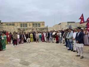 युरोप माल्टा / हावाहुरी चलेको चिसो मौसम थियो । माल्टाको आकास राम्रोसँग खुलेको पनि थिएन । प्रतिकुल मौसमका बावजुत पनि रोजगारीको सिलसिलामा युरोपको माल्टामा रहेका नेपालीहरु नेपाली डे अर्थात नयाँ वर्ष २०८२ मनाउनका लागि माल्टाको राजधानी भ्यालेटामा आइरहेका थिए । बैशाख १ गते अप्रिल १४ तारीख सोमबारका दिन नेपाली राष्ट्रिय पोसाकका साथै विभिन्न जाती तथा समुदायहरु आफ्नो मौलिक पहिरनमा सजिदै हातहातमा नेपालको राष्ट्रिय झन्डा बोकेर नयाँ वर्ष उत्सबका रुपमा मनाउनका लागि माल्टाका विभिन्न ठाउँबाट निस्केका नेपालीहरुको दृश्यले माल्टावासी लगायत माल्टा घुम्न आएका अन्य देशका नागरिकको ध्यानाकर्षण गरेको थियो ।
