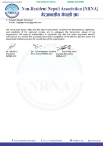 गैरआवासीय नेपाली संघ (एनआरएनए) केन्द्रीय कार्यसमितिले राष्ट्रिय समन्वय परिषद् (एनसीसी) माल्टामा देखिएको नेतृत्व संकट, सदस्यता विवाद तथा अधिवेशन प्रक्रिया अवरुद्ध अवस्थालाई मध्यनजर गर्दै सात सदस्यीय महाधिवेशन समिति गठन गरेको छ।